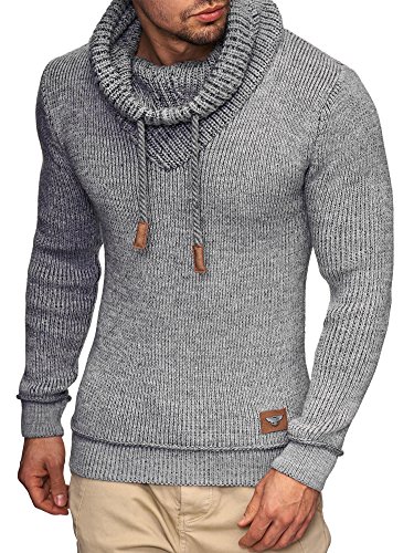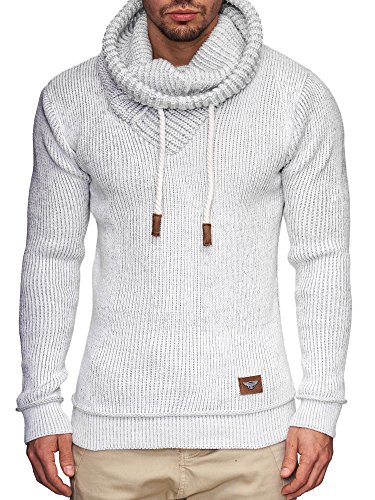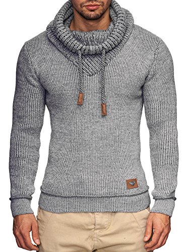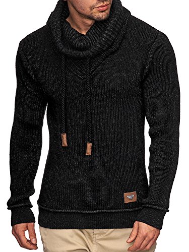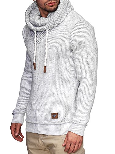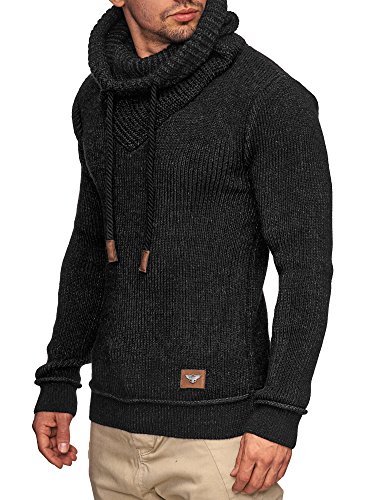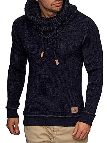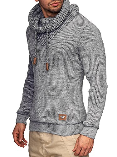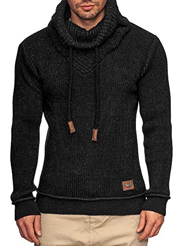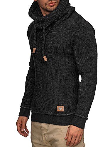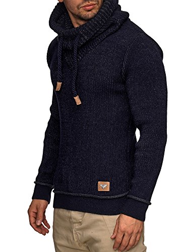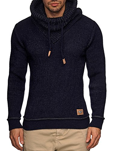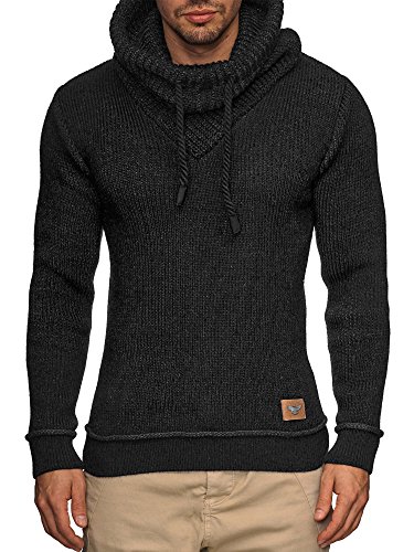 Indicode INDICODE Herren Keshawn Grobstrick Winter-Pullover Norweger Hoodie Strickpullover Schalkragen Slim Fit