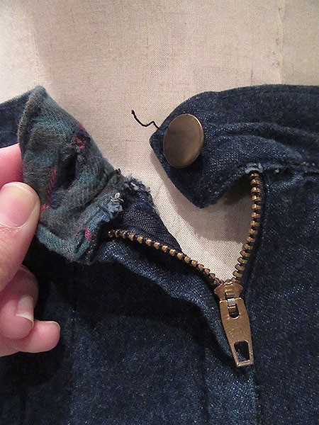 ウエスト部分の裏地にはチェック柄の布が