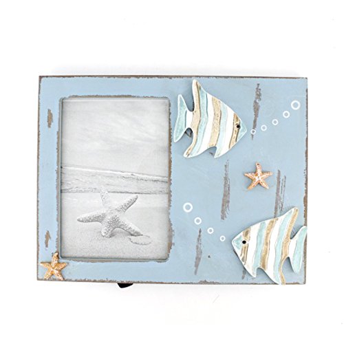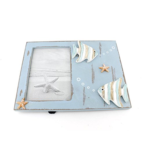 4x6 Inches Aqua Ocean Nautical Theme Sea Fish and Starfish Wooden Desk Stand Single Picture Photo Frame