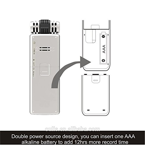 DOUBLE POWER SOURCE DESIGN: built-in 360mAh Li-ion rechargeable battery provides 28hrs record time and will be fully charged after about 2.5 hours and then can work 40hrs, you can also insert an LRO3(size AAA) alkaline battery(not supplied) to add record time that is very useful and important when urgent needs.