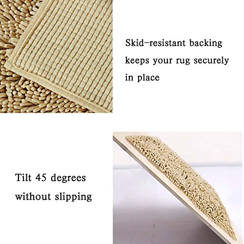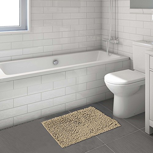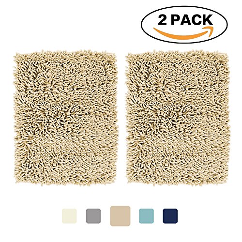 Super Soft Bath Mat Microfiber 2 Pack Shag Bathroom Rugs Non Slip Absorbent Fast Drying Bathroom Carpet by FlamingoP(Taupe 17" x 24")