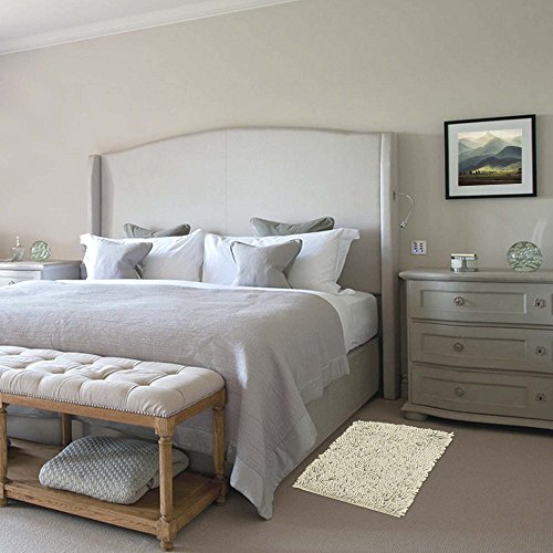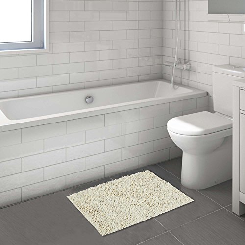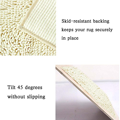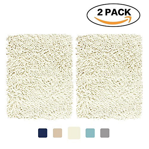 FlamingoP Non-Slip Super Soft Microfiber Shag Bathroom Rug, Bath Mat 17 X 24 inches, 2 Pack, Ivory