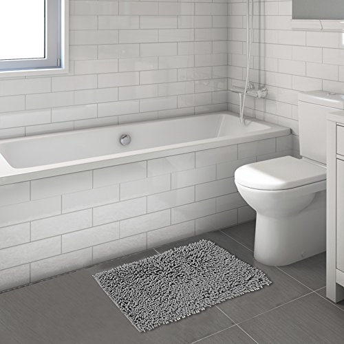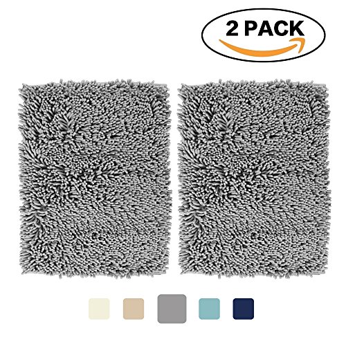 FlamingoP Super Soft Microfiber Bathroom Rugs Non Slip Shag Bath Mat for Kitchen Bedroom, 17"x 24", Grey, Two Pack