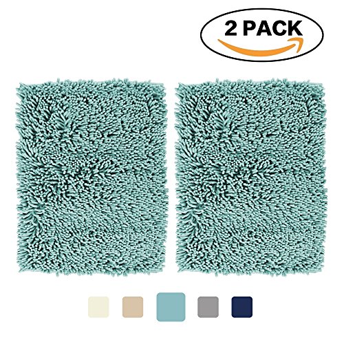 FlamingoP Super Soft Microfiber Bathroom Rugs Non Slip Shag Bath Mat for Kitchen Bedroom, 17"x 24", Duck Shell, Two Pack