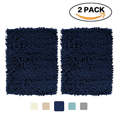 FlamingoP Super Soft Microfiber Bathroom Rugs Non Slip Shag Bath Mat for Kitchen Bedroom, 17"x 24", Navy, Two Pack