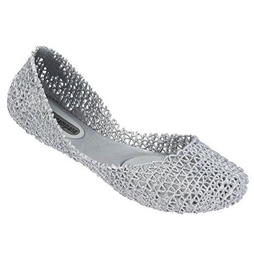 (Melissa)/Women's/Flats/DIRECT FROM USA/Melissa Women's Campana Papel VII Ballet Flat, Silver Glitter, 9 B(M) US
