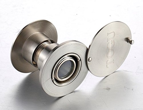 Togu TG-5028 brass door viewer has a 220-degree viewing range, a heavy-duty privacy cover, and finishes of satin nickel, satin chrome, polished chrome, antique bronze, antique copper and PVD gold are available. A heavy-duty privacy cover covers the inside of the viewer to prevent visibility from the outside to the inside. The viewer meets American National Standards Institute (ANSI) A156.16 specifications and is UL fire rated for up to 1-1/2 hours. It can be installed in a 1-1/10 inches (28mm) diameter hole in doors 1-3/5" to 2-1/6" (40~55mm) thick.