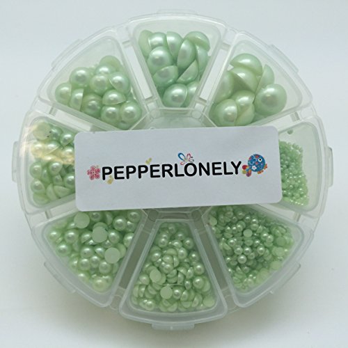PEPPERLONELY Brand 61 Grams (Apprx 3789PC) 2mm 3mm 4mm 5mm 6mm 8mm 10mm 12mm Green Flat Back Pearl Cabochons
