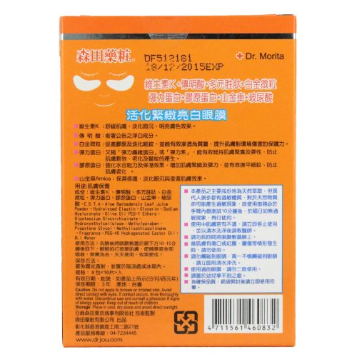 -. Feature : Dr. Morita Q10 Eye Mask / with Collagen / for Black circles / 8 pairs / Made in Taiwan