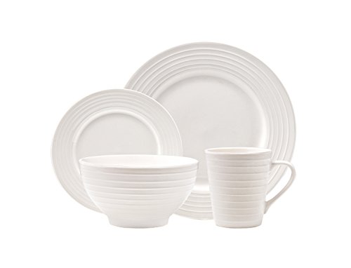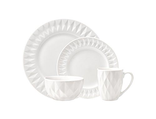 Includes 4 each of: dinner plate, dessert plate, bowl, and mug