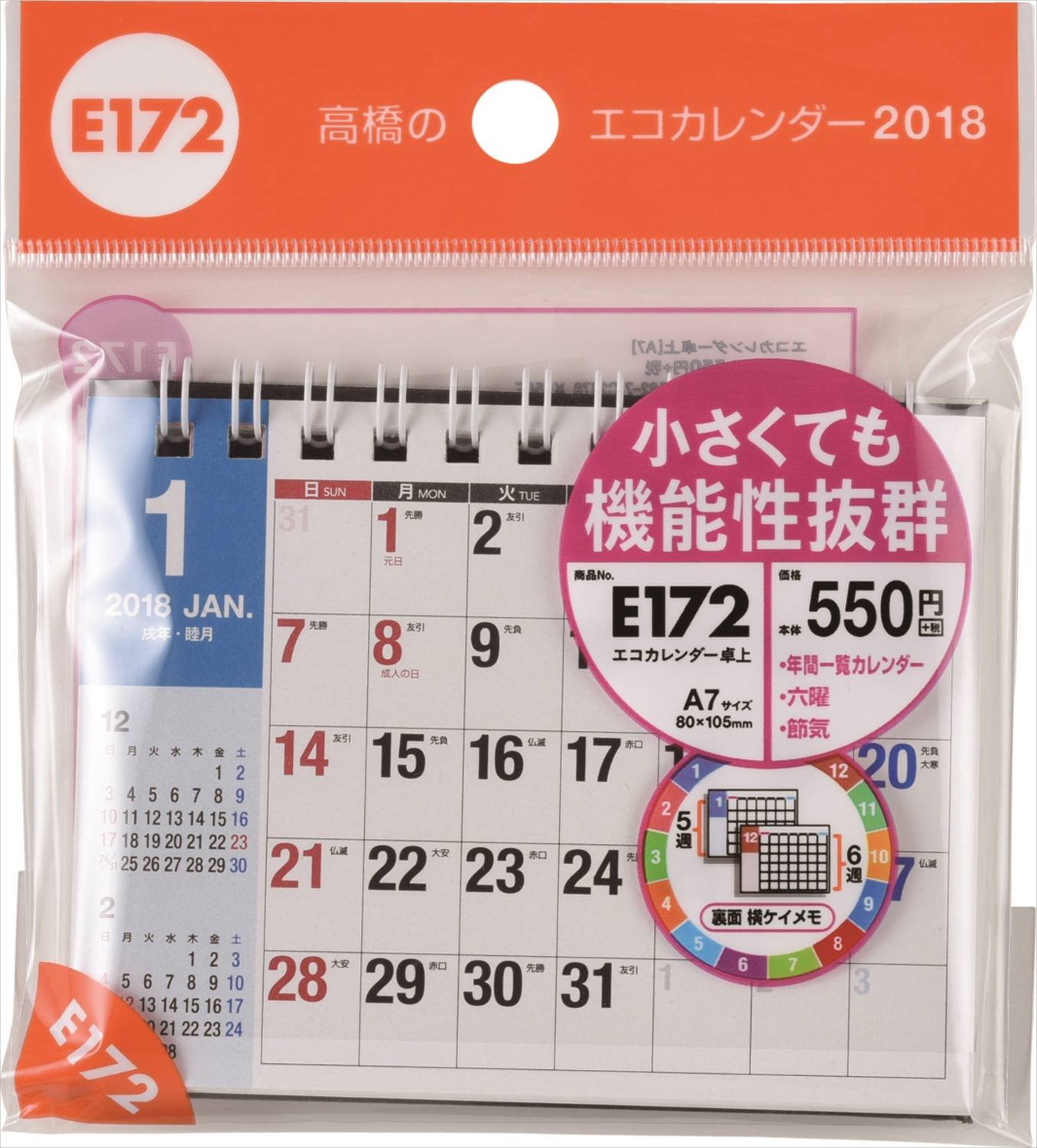 【Compact A7 size】 (br) With back side with sideways keymo (br) One of the smallest sizes in Takahashi's eco calendar.
