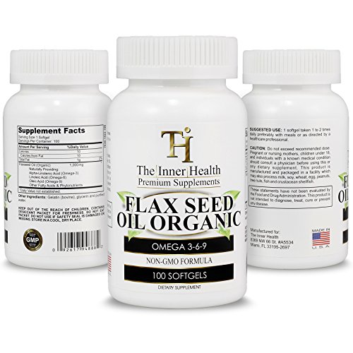 ORGANIC FLAXSEED OIL SUPPLEMENT to Keep Your Heart, Brain, Skin and Eye Health, Alternative to Fish Oil Source of Omega 3 6 9 - 100 Softgels For Men...