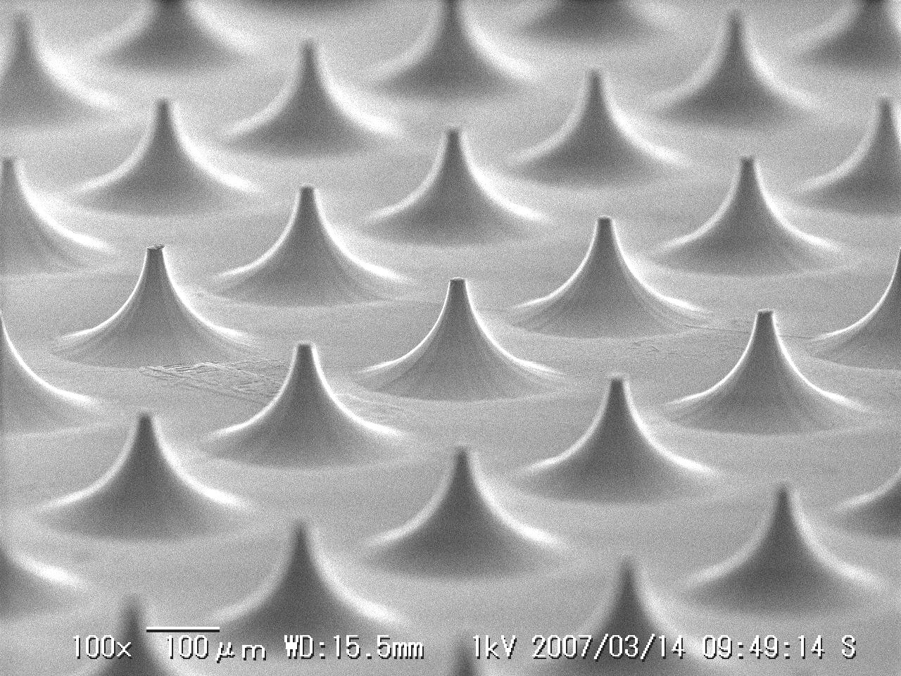The micro cone base is in the product disc (L: diameter 7 mm, S: diameter 4 mm, mini: diameter 4 mm), 177 micro-cones (L) and 53 wires (S, mini) form a surface as an aggregate