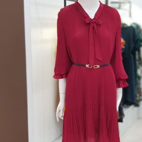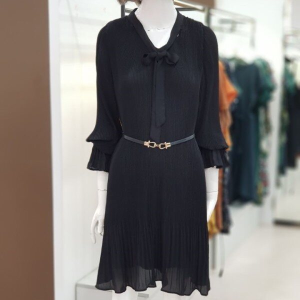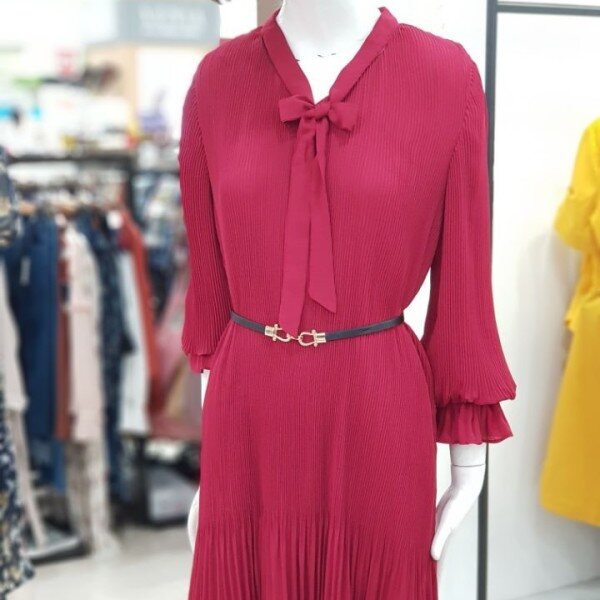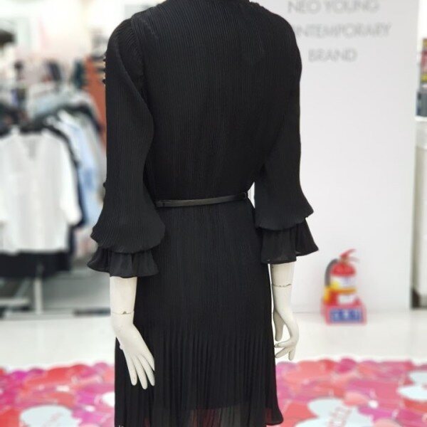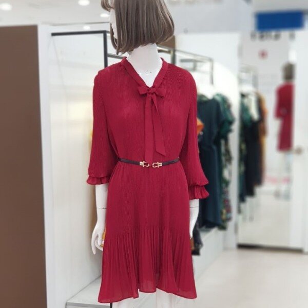 여성스러운 무드의 원피스입니다.밑단 플리츠 스타일로 무드있는 연출 가능하며라인을 살려 벨트 착용하시면무척이나 예쁜 상품입니다.