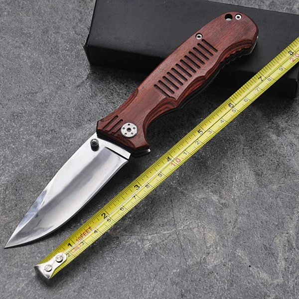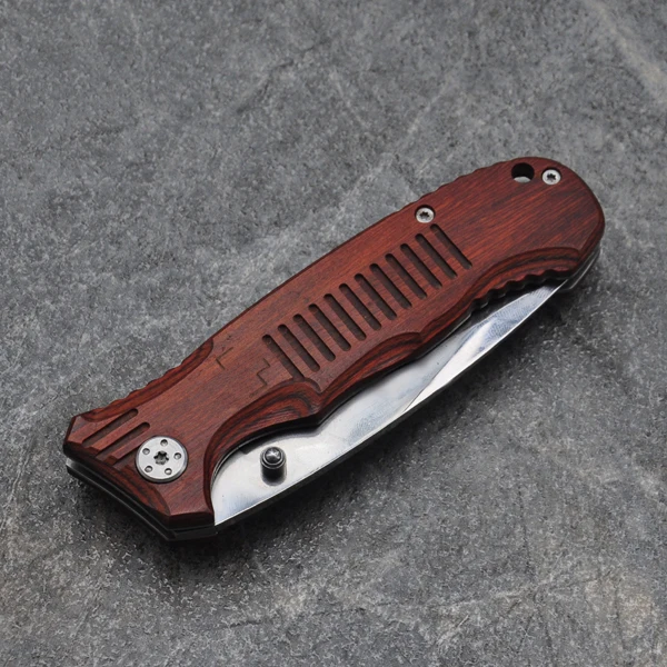 | [해외] 브랜드 전술 포켓 나이프 접이식 스틸 블레이드 titanium 서바이벌 나이프 사냥 edc 도구 나무 손잡이 |
