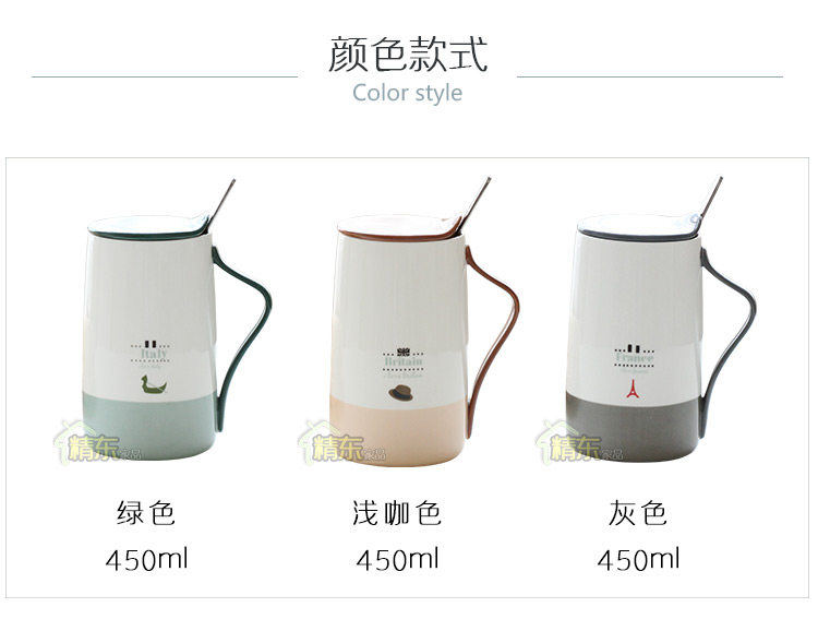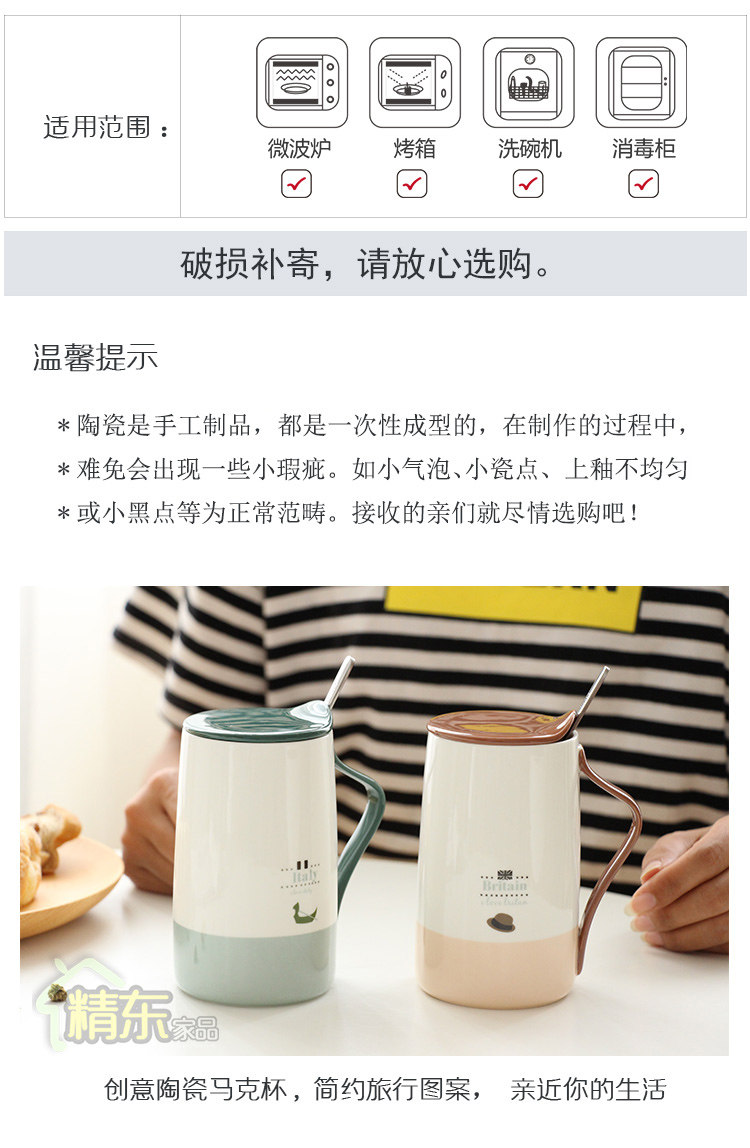 创意清新骨瓷马克杯带盖勺 简约 文艺大容量陶瓷水杯子情侣咖啡杯