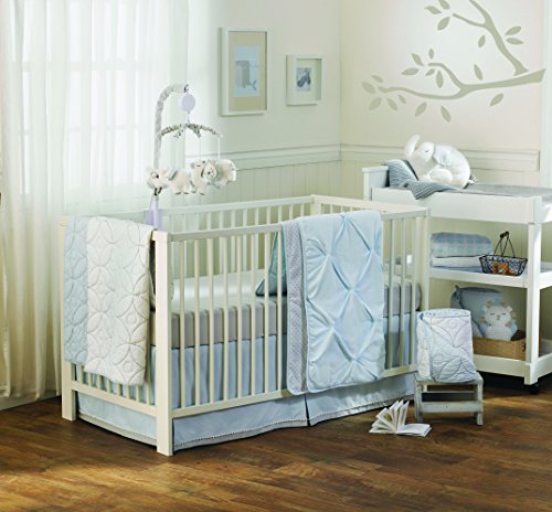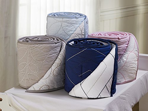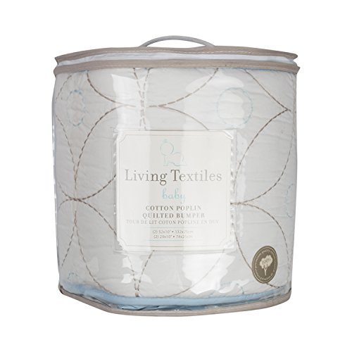 Living Textiles Cotton Poplin Bumper – White/Blue – 100% Cotton Crib Bumper, Reversible Design, Comfortable Protective Padding With Secure Ties,...