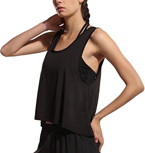 ChinFun Women's Yoga Sleeveless Shirts Soft Knit-in Cowl Back Tank Top