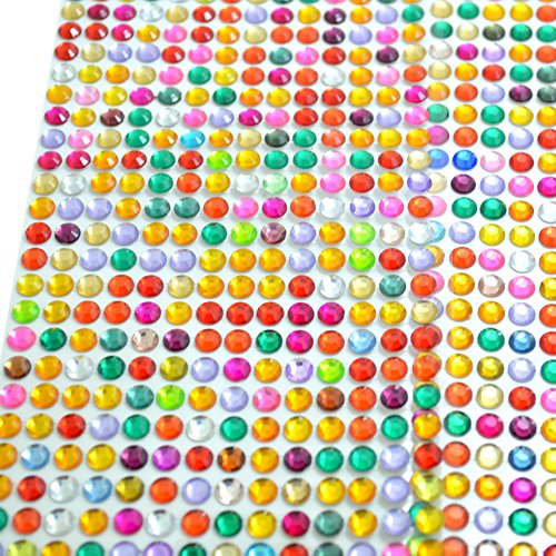 Bonayuanda 1512 Pieces 6mm Colorful Self Adhesive Bling Round Rhinestone Craft Jewels Gem Sticker Embellishments