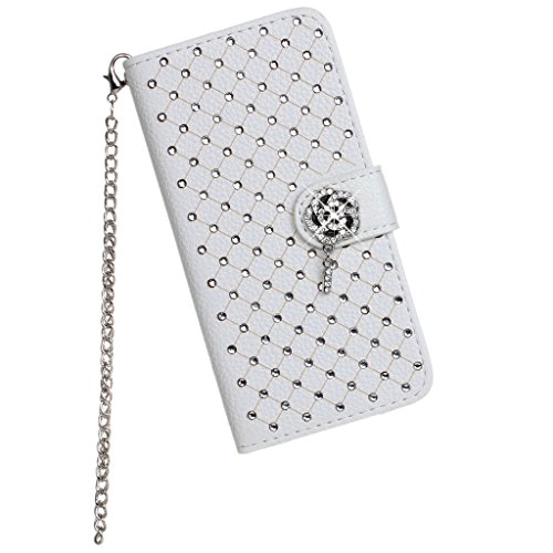 -. Title : Leather Handbag Wallet Wristlet Case Shell with Metal Chain Sling Strap Purse Clasp Stud Rhinestone Stones [Camelliae Series] Bling Starry for Apple iphone7plus (5.5 inch)