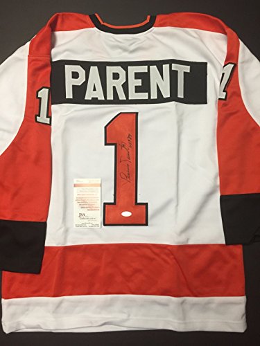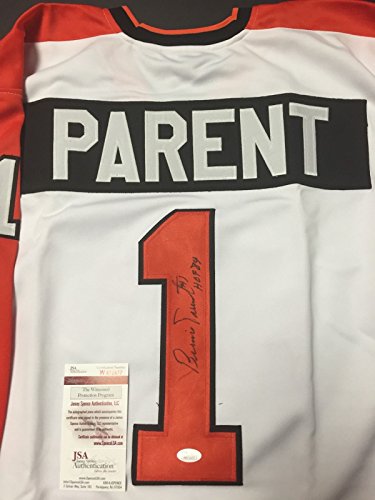 Autographed/Signed Bernie Parent "HOF 84" Philadelphia Flyers White Hockey Jersey JSA COA