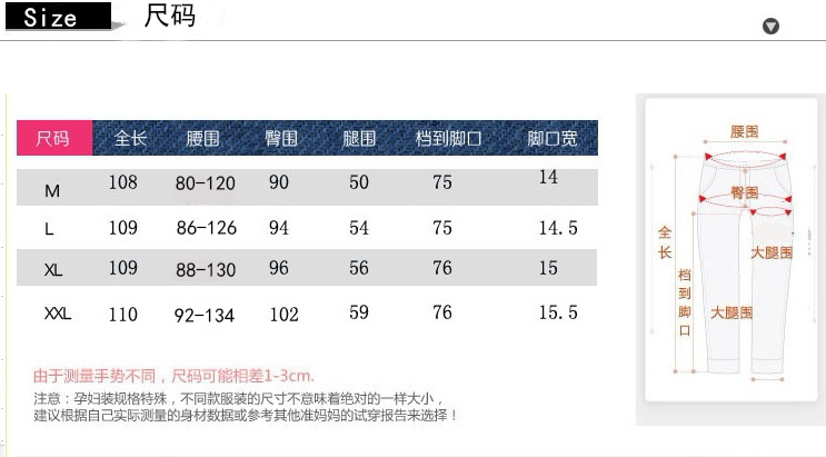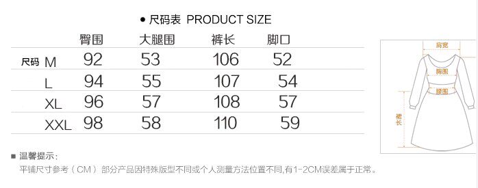 M:长104,臀围90,大腿围46,脚口30