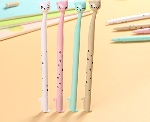 -. Feature : Cute modeling: Cute and cartoon cat modeling, pen body has a lovely little paw P.R.Int, tail design is also very cute, is the best P.R.Izes of students. / Feel fine: The use of high-quality materials, feel comfortable and delicate, novel shape, to stimulate the study of life and entertainment. / Fluent writing: The use of black 0.5MM fine needle pen tip, writing non-slip paper, the use will not leak, ink flow smooth and stable. But also for refills. / Cap-type design: Cap-style design, not only the pen can stand, but also can be a good protection pen tip, to prevent the pen tip due to fall and write discomfort. / A variety of colors: We have pink, green, brown, white to choose from (color random), and each color on the cat's face are different, is a good assistant office and learning.