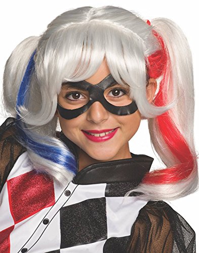 DC Super Hero Girls Harley Quinn Wig. Whether for Halloween, dress up parties, school projects, or just for fun, children have always loved to dress up! Rubie's Costume is happy to provide children with hundreds of costume choices - whether you're looking for a classic or modern version of a witch, monster, or ghost, a princess dress, historical figure, or their favorite character from movies or TV. Costumes are not the same as apparel, please be sure to check sizing information provided by Rubie's to help ensure you get the right size the first time. Rubie's Costume is family owned, family run, and based in Long Island, New York.Feature