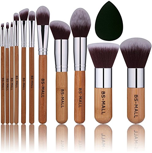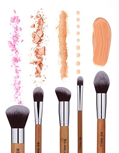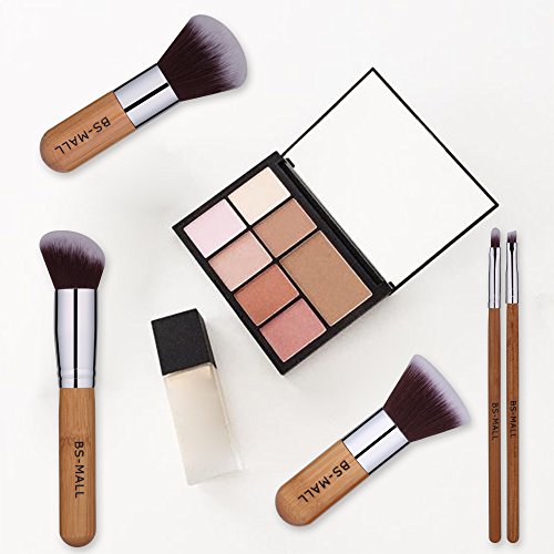 BS-MALL Bamboo Silver Premium Synthetic Kabuki Makeup Brush Set Cosmetics Foundation Blending Blush Face Powder Brush Makeup Brush Kit Plus...