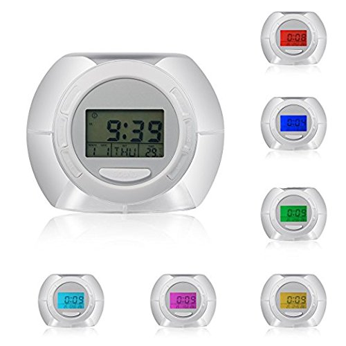 - ♪【7 COLOR CHANGING LIGHT】:7 color-changing alarm clock with soft light will change automatically in cycles.
