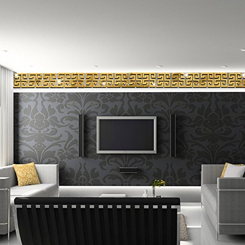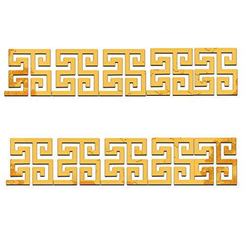 Mayfun Hollow Out Design DIY Wall Tile Mirror Sticker 4" Width 4" Height 10 Pcs per Set (Gold)