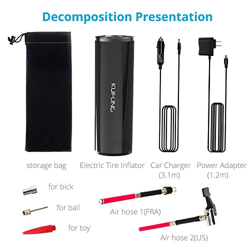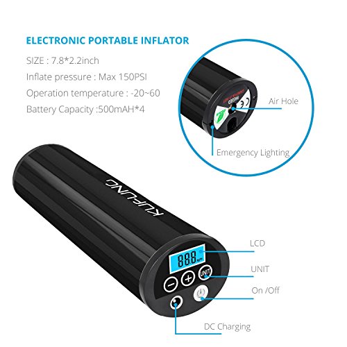 - ★Large Backlight LCD Light&LED Light★- KUFUNG inflator comes with LCD digital displays with a backlight that is easy to read when pumping in the dark or during the night. This multi-functional electric air pump also can monitor the air pressure.