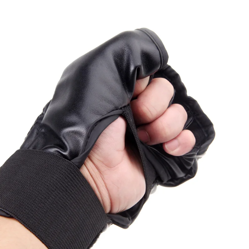 Features: Half mitts and hollow palm design, good air permeability, prevent sweating. Extended wrist band with fastener tape for maximum protection. Made of high quality PU leather with thicken foam, flexible and wearable. Perfect for MMA, Muay Thai and boxing training.