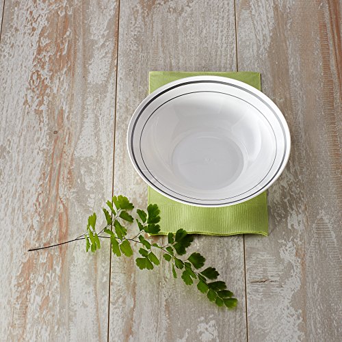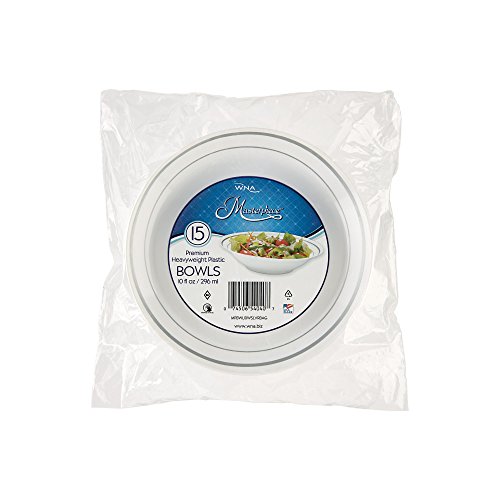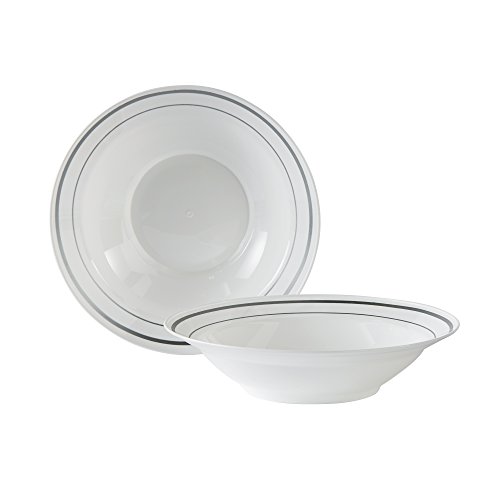 15-Count package of white plastic bowls with silver accents