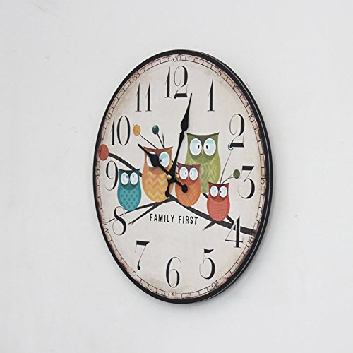 - Title : Retro Antique Style Owl Pattern Europe Style Living Room Home Decoration Wooden Round Wall Clock