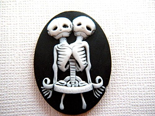 2 Pack of White Conjoined Twin Skeleton / Skull Cameo Resin Cabochon 30mm x 40mm