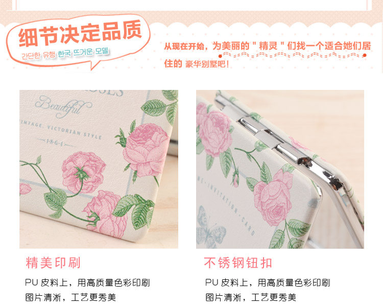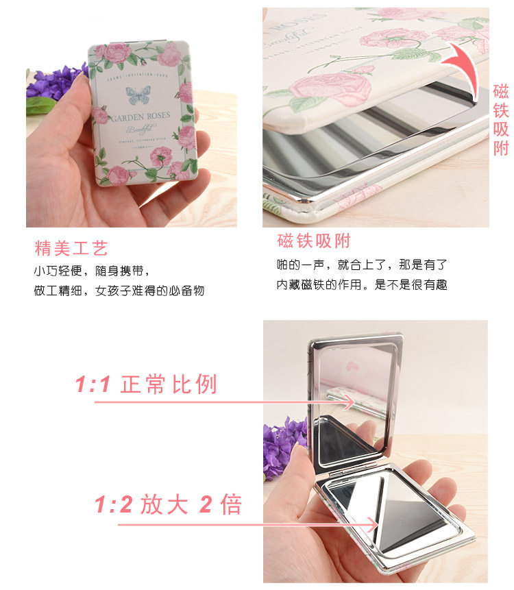 1.加厚双面化妆镜,一面1:1,一面1:2放大2倍。