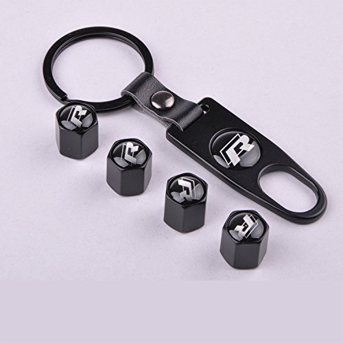 Set of 4 Car Tire Valve Stem Air Caps Cover + Keychain For VW Volkswagen Golf R