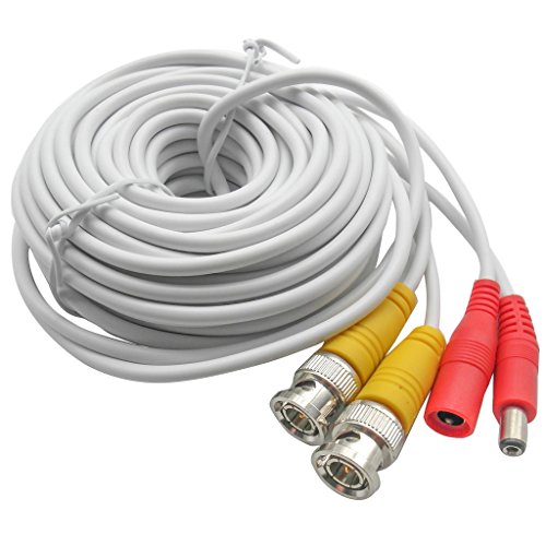 32Ft. White, Pre-made All-in-one BNC Video and Power Cable Wire with Connector DC 2.1mm for CCTV Surveillance Security Camera