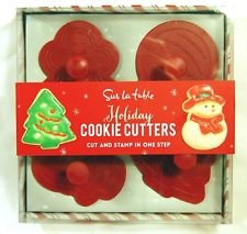 Sur la Table Holiday Cookie Cutters / Stamps (Red) - Gingerbread Man, Ornament, Snowman Christmas Tree