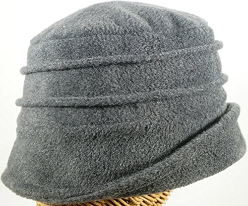 (Hat Stuff Loft)/Accessories/Hats/DIRECT FROM USA/Womens Dip Brim Fleece Pleated Cloche in Charcoal Made in Massachusetts