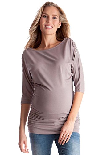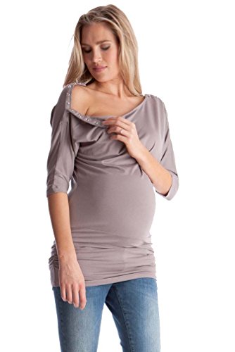 Seraphine's classic maternity and nursing top features chic opalescent snap-down (popper) detailing at the shoulders for easy nursing access. This gorgeous maternity top is the epitome of functional fashion! Made in super soft and silky stretch jersey, which is flatteringly ruched around your hips, this maternity and nursing top drapes beautifully over your curves. It adapts to your growing bump throughout your pregnancy, and skims flatteringly over your post-birth body once your baby is born. 92%Viscose 8%Elastane Machine wash gentle Hang to dryFeature