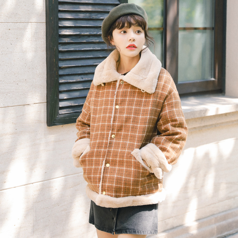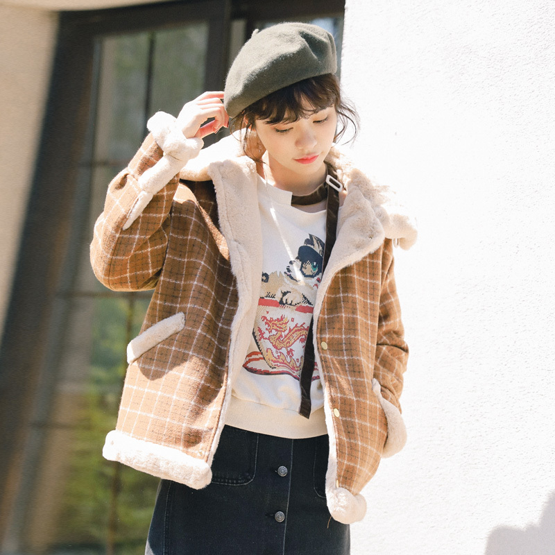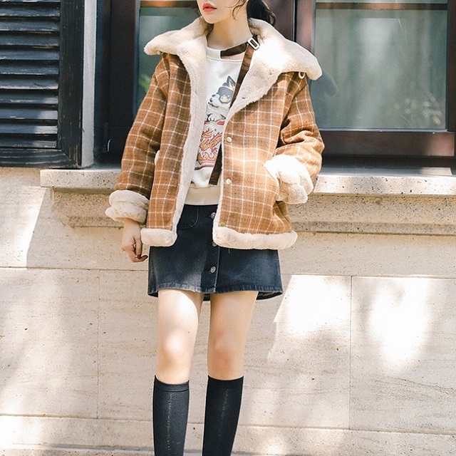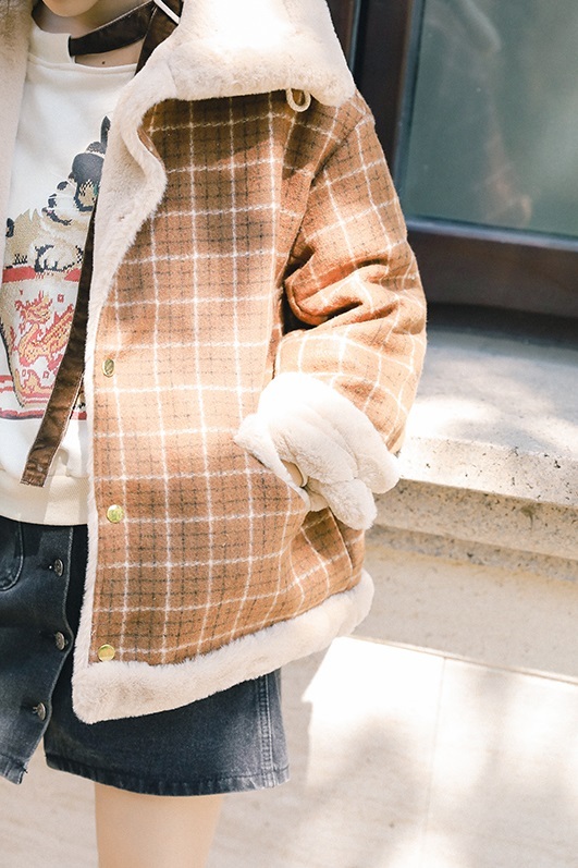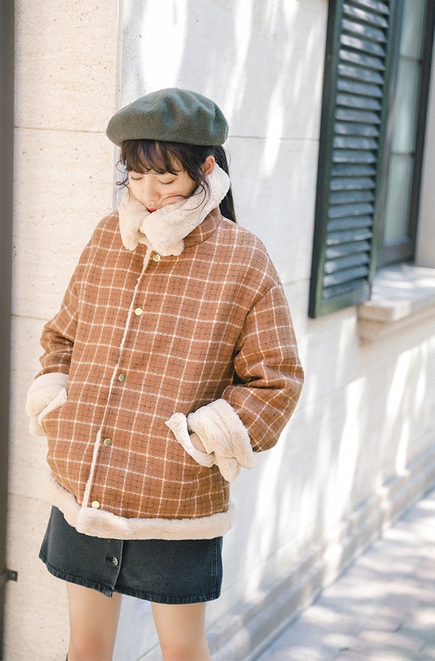 ナチュラルなブラウンカラー×チェック柄がトレンドライクなショート丈コートです☆