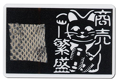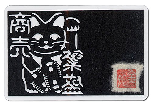 Cutting picture card that brings happiness “SYOBAIHANJO & Manekineko (Black version)” Including White snake's fallout leather (Traditional Japanese amulet of money luck), 3.54” x 2.36”