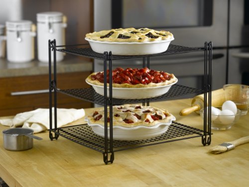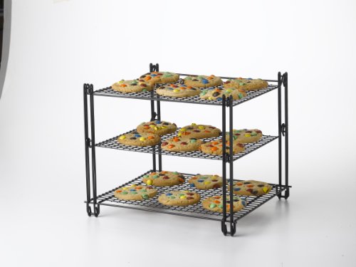 - Feature : Three tiered cooling rack / Non-stick coated for easy cleanup / Mesh wire design folds flat for easy storage / Extra support arm for heavier baked goods / Dimensions 13-1/2-inch by 12-inch by 12-1/2-inch