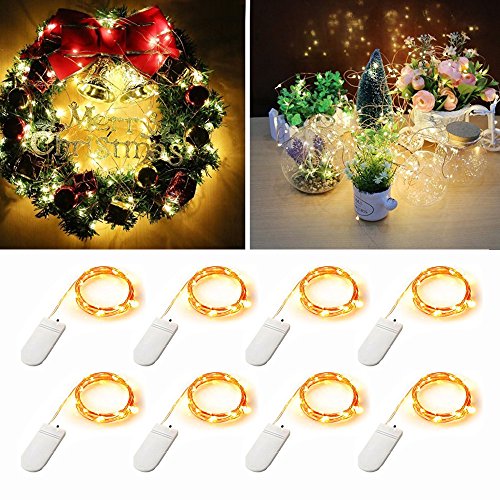 [8-PACK] 6.6ft Starry String Lights Battery Operated, 20 Micro Starry LED String Lights On Copper Wire, Waterproof LED Moon Starry String Lights for DIY Christmas Party Home Decor (Warm White)
