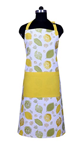 Apron, Unique Citrus Splash Design, Aprons for Women with Pockets, 100% Natural Cotton, Eco-Friendly & Safe, Adjustable Neck & Waist ties, Machine Washable, Cute Apron by CASA DECORS