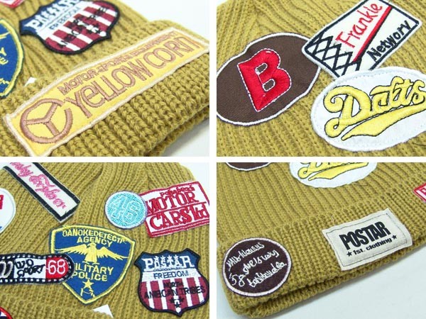 ワッペンいっぱいのニットキャップは