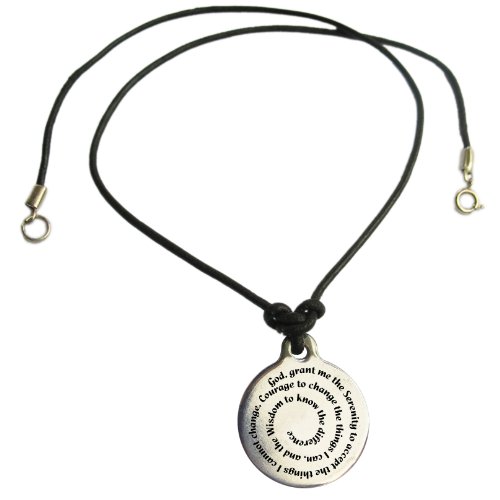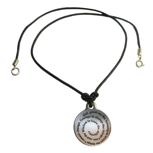 -. Binding : Jewelry -. Brand : Serenity Is Forever -. Department : unisex-adult -. Feature : Laser Engraved by Artist in Recovery / 100% Brushed Stainless Steel / Permanent black mark that cannot rub off or fade / Reads: The Serenity Prayer / For Men or Women -. Label : Serenity Is Forever -. Manufacturer : Serenity Is Forever -. Model : spmedleatherneck -. MPN : spmedleatherneck -. PartNumber : spmedleatherneck -. ProductGroup : Jewelry -. ProductTypeName : FASHIONNECKLACEBRACELETANKLET -. Publisher : Serenity Is Forever -. Studio : Serenity Is Forever -. Title : Serenity Prayer Medallion Leather Necklace