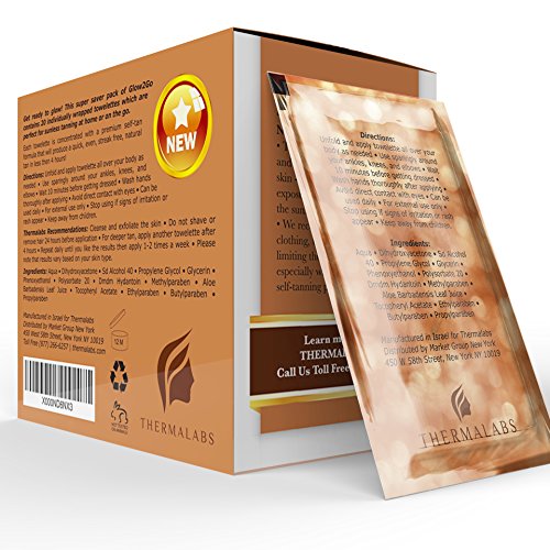 -. Feature : SAY GOODBYE TO THAT PASTY PALE SKIN: We know you want to look your best all year long; Winter is no excuse for lifeless white skin and that's why we're here! The INNOVATIVE tan formula by Thermalabs will transform even the whitest skin to a perfect bronze in less than 4 hours, streaks free, like you've just been on a holiday in the Caribbeans! / GET A SEXY TAN WITHOUT THE SUN DAMAGE: Who says sexy can't be healthy? You can be your sexy-self and get all those compliments for your beautiful tan without having to expose yourself to dangerous sun-radiation which causes sunburns, wrinkles, discoloration and skin cancer. You are right to care about your health! Our Glow2Go towelettes by Thermalabs will give you a worry-free natural-looking tan all year long / COMPACT, EASY AND CLEAN: This super saver pack contains 20(!) individually wrapped towelettes, hygienic and easy to take anywhere for the perfect self-tan at home or on the go. Use one towelette for your lower body and one for the top, then you can simply throw them away after use without worry about cleaning or washing anything! / TAN TO THE PEOPLE! We use safe ingredients in our Thermalabs Glow2Go self tanning towelettes, no toxic chemicals like in the conventional self tanners out there! You'll never have to worry about what you're putting on your body, even you, yes YOU, with the sensitive skin! Now EVERYONE can look and feel amazing! / 100% MONEY BACK GUARANTEE: Thermalabs is America's best self tanning company producing nothing but the best self tanning products in the market. We stand behind our products and are offering you a 100% money back guarantee! We know you'll never need it, but if for some reason you're not 100% amazed by the results - send the product back and get a full refund!